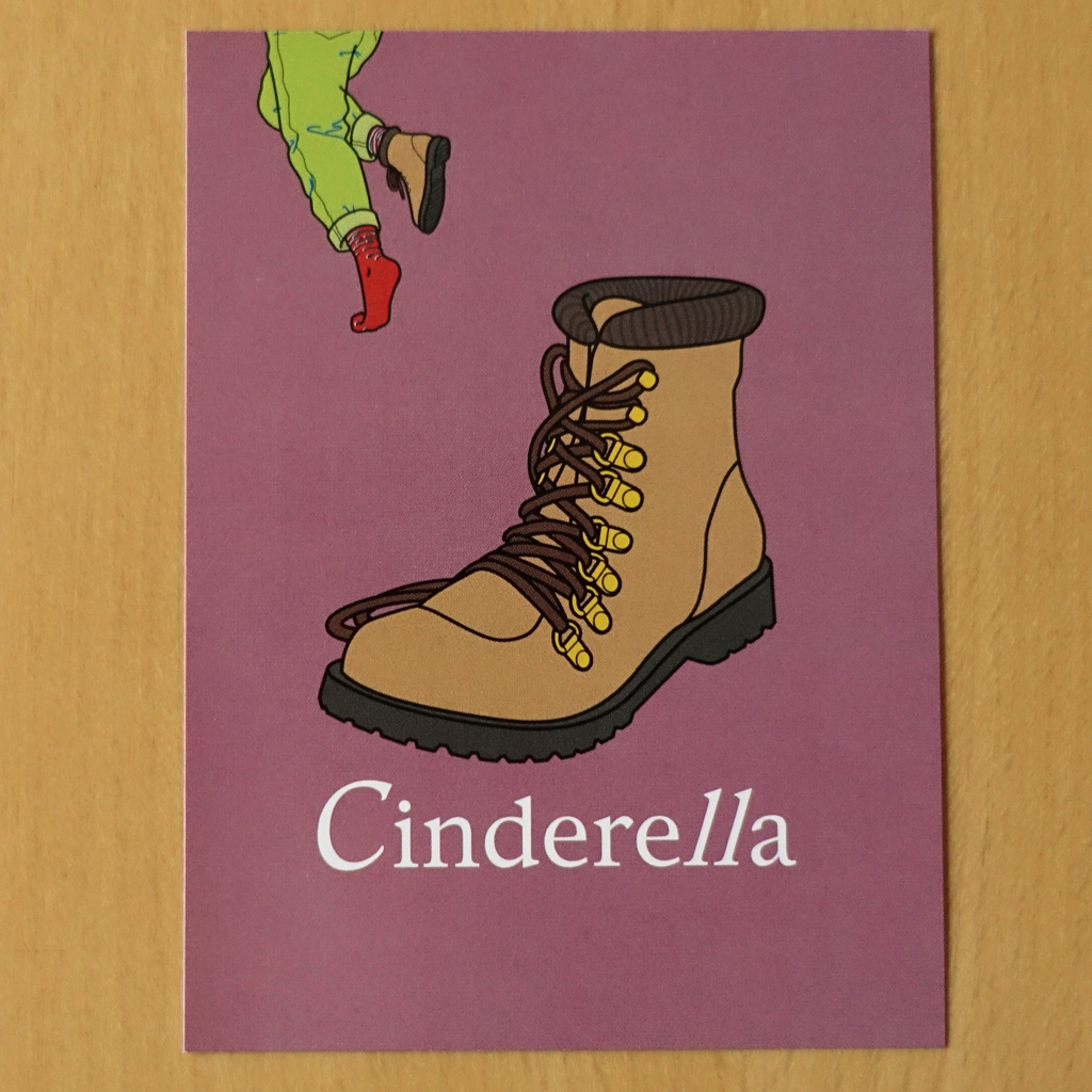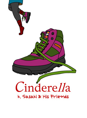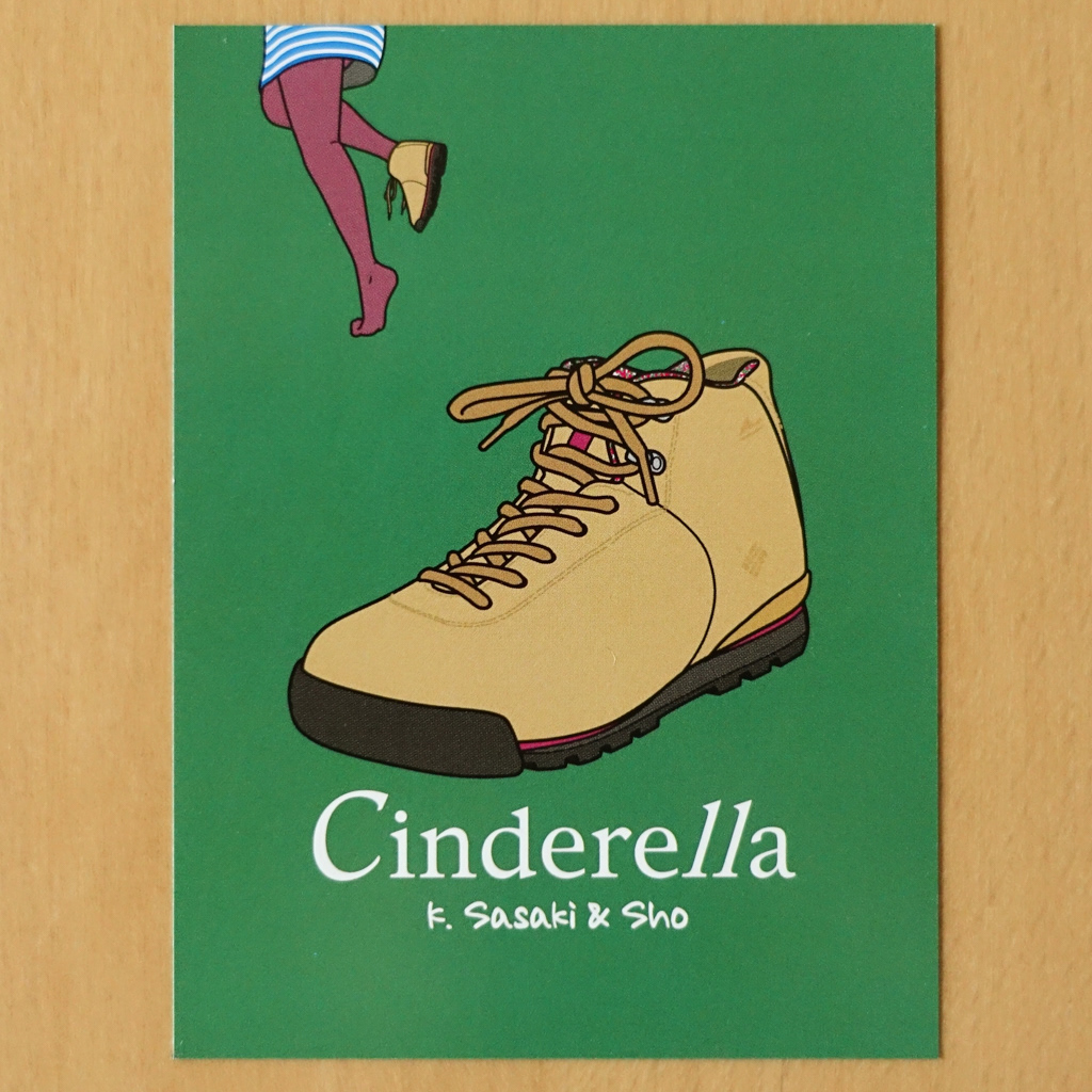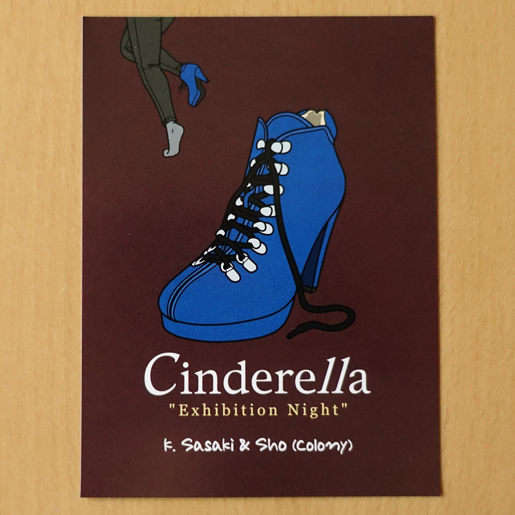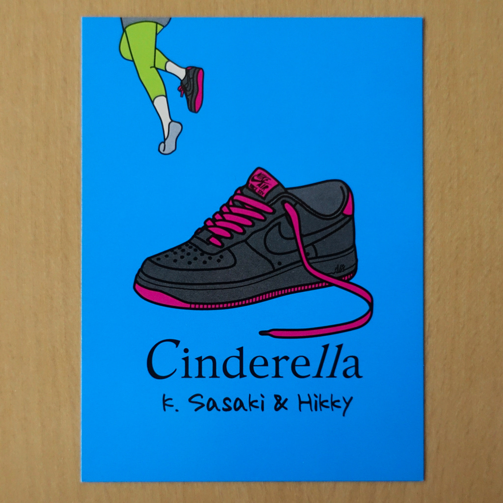 平日夜の終電頃までの開催であったため、パーティ名が「Cinderella」と決まっていました。そこでフライヤーでは、終電に走る女性とフロアに残された片方の靴をイラストで表現しました。また、ロゴでは「ll(2つのエル)」を他と異なる書体にして際立たせ、終電時間の目安である「11時」を暗示しました。